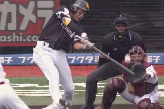 初回に先制の適時二塁打を放った柳田は、3回2死二塁で右中間を破る勝ち越しの適時三塁打。5回1死二塁では右前安打として右翼の送球の間に二塁へと進んだ。二塁打、三塁打、単打と次々と放って王手。サイクル安打のかかった7回の第4打席は、楽天2番手の高梨の前に遊飛に終わった。