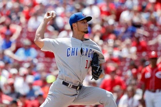 ようやく勝てた。カブスに移籍後、8度目の先発マウンドに上がった右腕。立ち上がりはブランディーノに四球を与えた後、1死を奪ったが、ボットに中前打、ジェネットに死球で1死満塁。デュバルから空振り三振を奪うも、シェブラーに遊撃内野安打を許して1点を先制される。