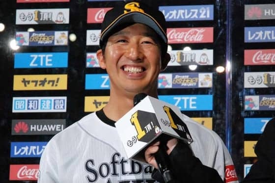 22日の西武戦でスタメンマスクをかぶったソフトバンクの市川友也が、攻守に渡る活躍でチームの連敗ストップに貢献。移籍後初となるお立ち台で満面の笑みを見せた。