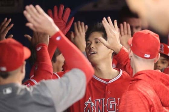 エンゼルスの大谷翔平投手は23日(日本時間24日)、敵地ブルージェイズ戦に2試合連続で「5番・DH」でスタメン出場。2点を追う9回1死満塁から同点に追いつく2点タイムリーを放った。続くシモンズの打席でメジャー初盗塁を記録した二刀流ルーキーは新たな記録を達成したと米メディアが報じている。