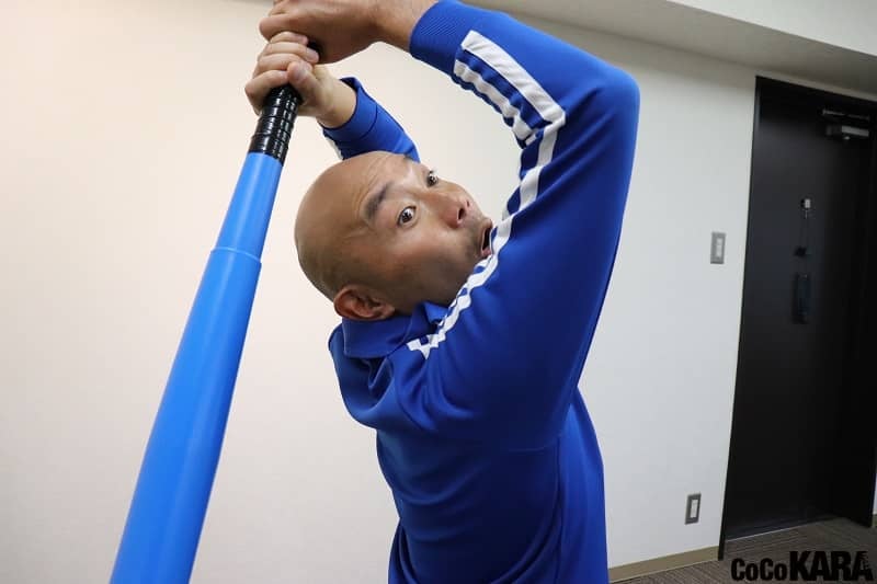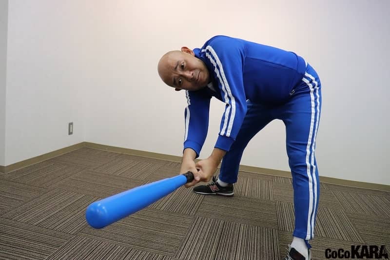 「右打ちのモスビー」もやることで、左右バランスよく鍛えましょう。