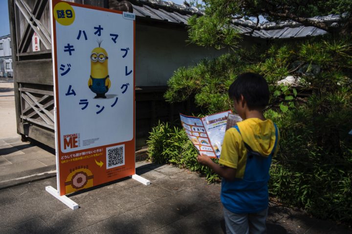 「ミニオンズラン」と聞くと、単に走るイベント? と思ってしまいそうですが、そうではありません。同イベントでは、まず参加者が「ミニオン」に変身。かわいいフォトスポットを楽しみながら、万博記念公園内に設置された謎解きスポットを探し出し、クイズに答えていきます。