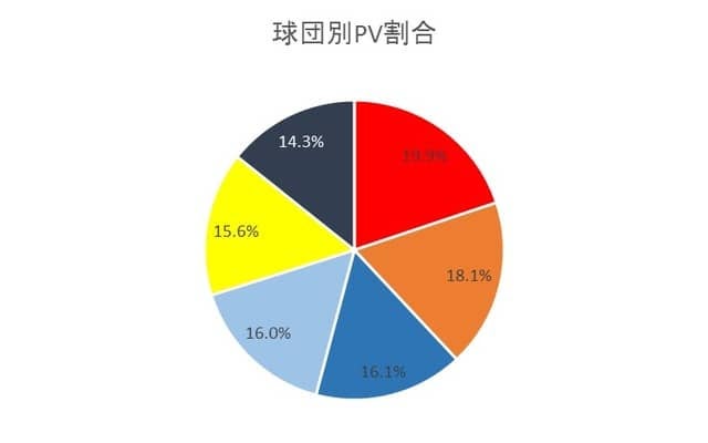 セントラル・リーグの球団別PVランキングの1位は、リーグ2連覇中で、2018年も首位を独走する広島東洋カープとなった。2位は読売ジャイアンツ、3位は横浜DeNAベイスターズ。続いて、中日ドラゴンズ、阪神タイガース、東京ヤクルトスワローズとなっている。