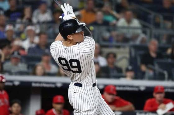 両チーム無得点で迎えた5回。先頭で打席に入ったジャッジはエンゼルス先発のギャレット・リチャーズの初球の95.1マイル(約151キロ)の直球を捉えた。打球は二塁手・キンズラーの頭上を越えていく弾丸ライナーで中前に弾んだ。