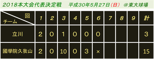 3回表、国学院久我山の投手は李に交代。先頭の田村がセンター前にヒットを打ち出塁すると、米水の痛烈なセンターライナーをセンターが捕球できず後逸し、1点を立川が勝ち越す。