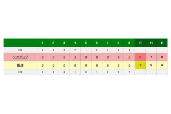 ソフトバンク 5-2 阪神(31日・甲子園)