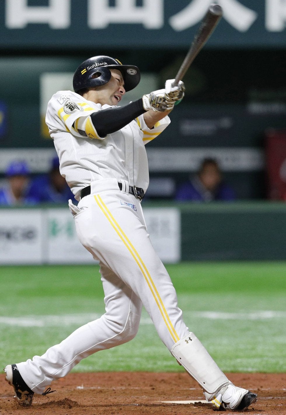 この1発を工藤公康監督が「左(投手)に対してどうするのか、しっかりコーチと話をして打ってくれた。いいホームランだった」と称えると、さらに甲斐拓也にもテラス弾が飛び出して一挙4点を奪取。そして4番・柳田悠岐。3回裏、粘った末に四球を選んだ中村晃を1塁に置いて、今永の初球のストレートをひと振り。炸裂音とともに高々と打ち上がった打球は、これまでにないほど大きな弧を描いてライトスタンドに着弾。「イメージ通りのいいスイングができた」と本人も大満足の12号弾だった。