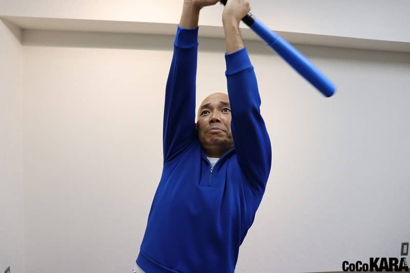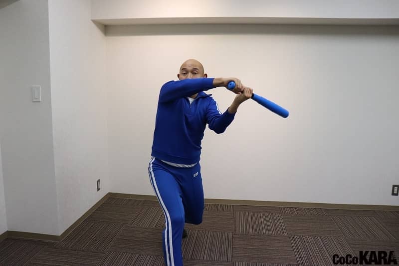 構えから打った後までバットを動かし続けるオグリビーのモノマネで、手首を柔らかく使えるようになります。