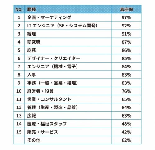もっとも長く座っている職種トップ3は?