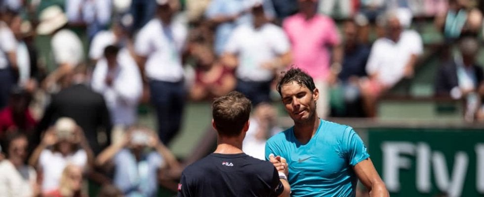 試合終了後にシュワルツマンと握手を交わすナダル
