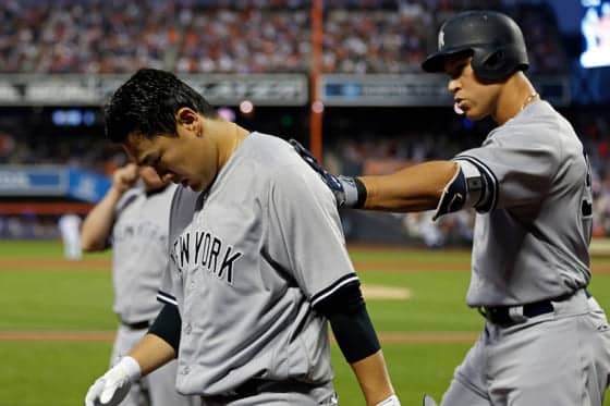 8日(日本時間9日)の敵地メッツ戦で5回1安打1失点と好投したものの、両太もも裏に張りを感じて75球で緊急降板したヤンキースの田中将大投手。今後の見通しについては、9日(同10日)にドクターの診断を受けてから明らかになる見込みが、アーロン・ブーン監督は通常通りの間隔でマウンドに上がっても「驚かない」と試合後に明かしている。