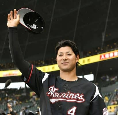 3打点の活躍で阪神に逆転勝ちし、観客に手を振るロッテ・藤岡裕=甲子園【写真提供:共同通信社】[/caption] 千葉ロ…