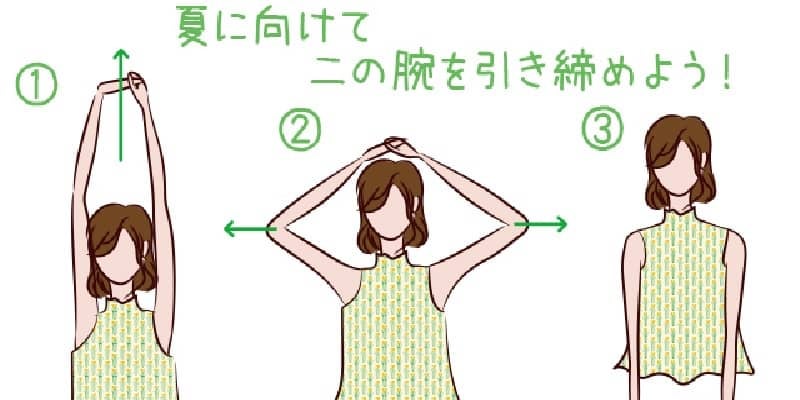 肩や首まわりは、同じ姿勢を続けていると、筋肉が固まって血行も悪くなります。そうならないためには、ときどき筋肉を動かすことが大切です。そこで、肩や背中の筋肉を動かすとともに、夏に向けて二の腕を引き締める効果もあるエクササイズをご紹介します。