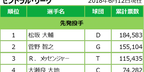 マイナビオールスターゲーム2018 ファン投票中間発表 06/12発表分 | BASEBALL GATE