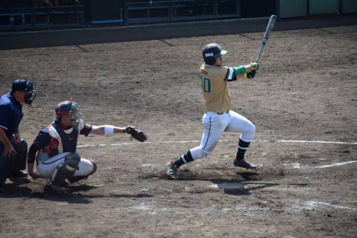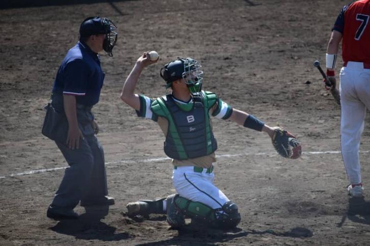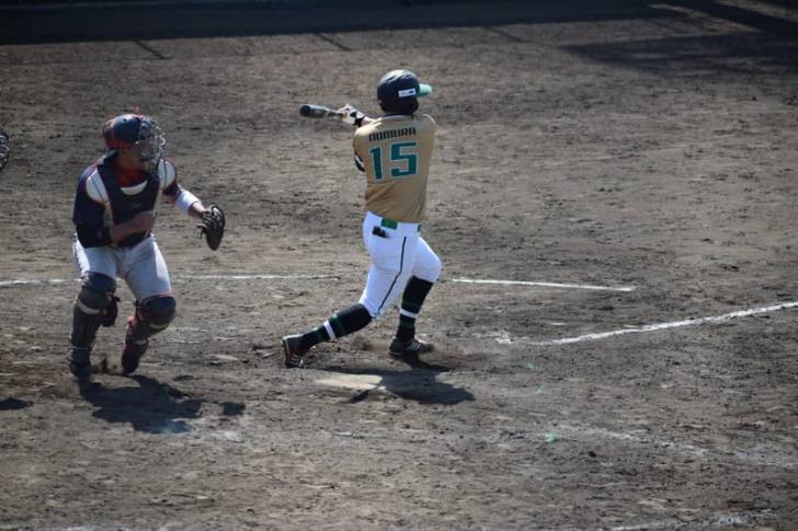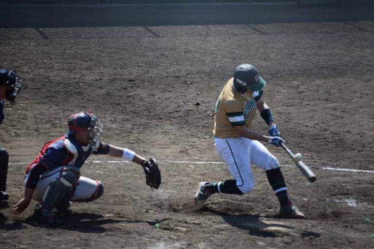 さあ、試合が始まりました。先発は亀谷孝一郎投手、リズムよく3人を打ち取り、良い立ち上がりです。そして1回裏、早くも先制点が。先頭打者の田中彰選手が死球で出塁、三浦祥平選手の打席で田中選手がすかさず盗塁をして無死2塁とします。三浦選手の一ゴロの間に田中選手は3塁へ。さらに千田隆之主将も死球で塁に出たあと、本池太一選手の打球を二塁手が見失ったのか内野安打となり田中選手がホームイン! さらに1点を加えて2-0としてからしばらくは両チーム無得点が続きます。