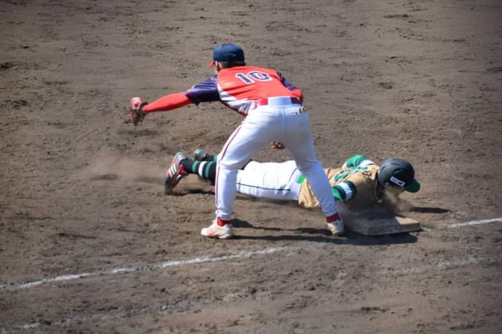 それでなくても1打席目も2塁打を打っている亀谷投手、投げては無失点、打ってはマルチ安打の1打点、ここまでは満点評価です。次の打者の田中彰選手は四球を選んで出塁、そして三浦祥平選手の右中適時3塁打で追加点をあげる東京バンバータ。4-0とリードを広げます。