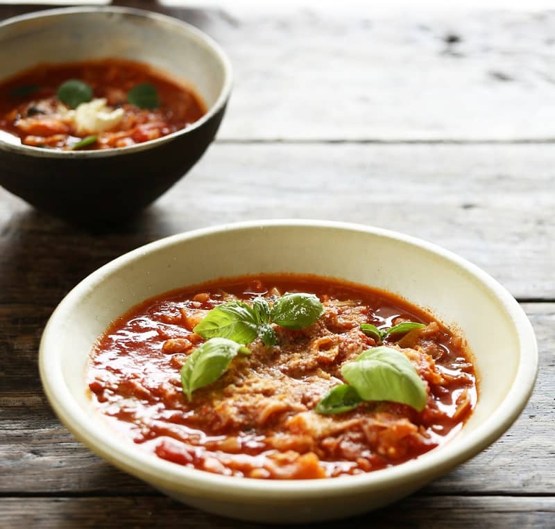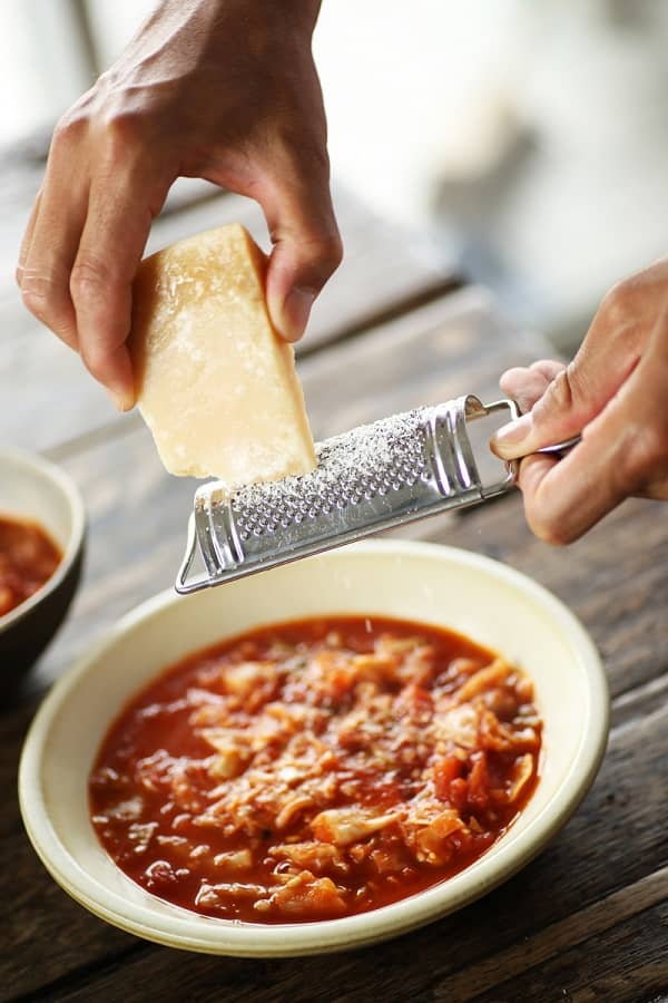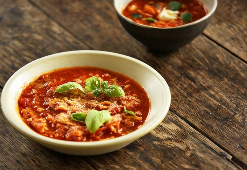 (※美味しさをアップするなら、この上にサワークリームを添えたり、煮込む時に生クリームを投入してあげると更に美味に。今回は、トマトの酸や野菜の旨味、ハーブやスパイス、にんにくなどの風味や香り、マグネシウムを意識したパルメザンチーズの旨味、塩のみでシンプルに纏めています)