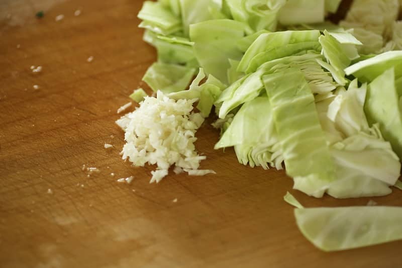キャベツは外側の葉の部分にビタミンCが豊富。次に多いのが芯のところ。天然の胃腸薬と呼ばれるビタミンU(キャベジン)も豊富。今回は栄養を余すことなくいただく為、芯も細かく刻んで全て使用します。カルシウムも豊富で、カルシウムの吸収を促す脂溶性のビタミンKも含まれているため、油で炒めてからスープとして摂取する調理工程を選択しました。ビタミンCは加熱による損失が言われますが、スープに溶け出たビタミンCは、アミノ酸化合物などの別の成分と反応することにより、同じ働きを取り戻すという説も。よって、スープも具材も、全て一緒に大切にいただくことを心がけます。