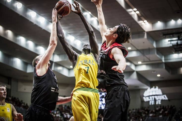 高さと強さで勝るオーストラリアに対し、日本はゾーンディフェンスを多用してインサイドの守りを固める。オーストラリアはここを攻めずに外からの攻撃を試みるがシュートが決まらない。日本は立ち上がりから八村が爆発。相手の激しいディフェンスをモノともせずに個人技で得点を重ねる。続いてはファジーカスの出番。連続3ポイントシュートで勢いに乗ると、こちらも柔らかいシュートスキルをフル活用して得点を重ね、前半を終えて42-33とリードを奪った。