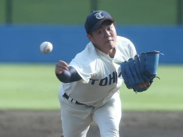 大学選手権では全4試合に登板し、防御率0.00で最優秀投手賞に輝いた東北福祉大の津森宥紀