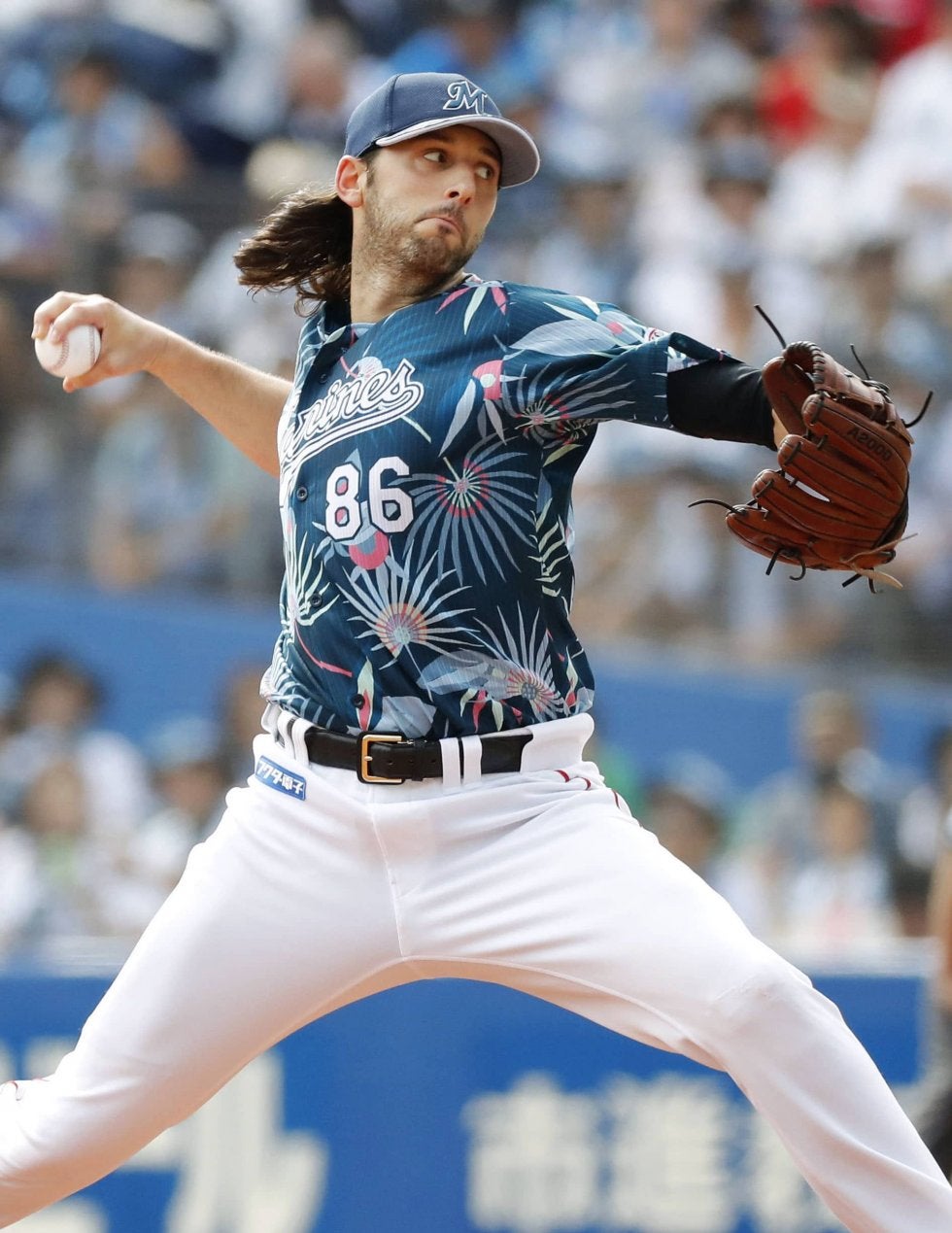 千葉ロッテのボルシンガーが7日の北海道日本ハム戦で6回途中3安打1失点の好投。自身10連勝でハーラートップとなる今季11勝目を挙げた。