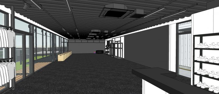 ◆店舗面積 A棟(GYM)158.4 m²(47.9 坪)