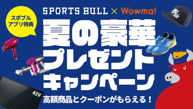 【アプリ内限定】キャンペーン実施中抽選で数万円相当の商品や、お得にお買い物できるクーポンがもらえるチャンス!スポーツブル…