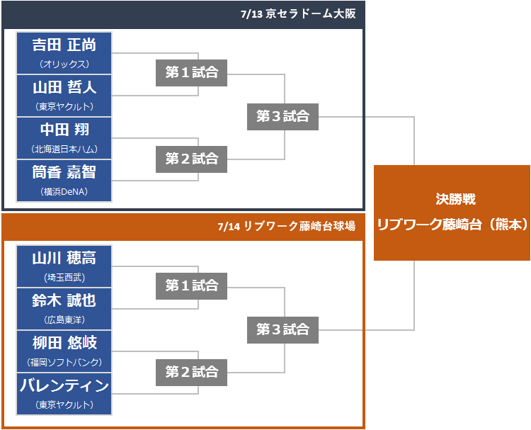2018年から第1戦、第2戦でそれぞれセ、パ4選手がトーナメントで争って1位を決定。その2人が第2戦の試合前に直接対決して優勝者を決定する。