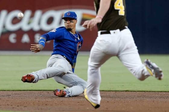 カブスのハビエル・バエス内野手が見せた華麗な“回転トス”が話題になっている。13日(日本時間14日)、敵地パドレス戦。初回の大ピンチを最少失点で防いだバエスの美技をMLB公式ツイッターが伝えている。