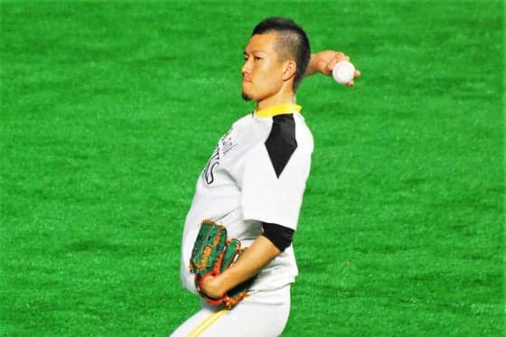 16日は地元での「鷹の祭典」の初日でもある。「テレビで見たら金色が黄色にしか見えないかもしれないけど、近くで見たら意外とかっこいいですよ」という鷹祭ユニフォームを着て、多くのホークスファンに勇気を与えるピッチングを見せてくれるはずだ。(藤浦一都 / Kazuto Fujiura)