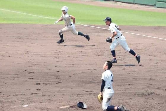 6点リードで迎えた7回。1死二塁から小園が放った大飛球は中越えへコールドを決めるタイムリーを放ち試合を決めた。