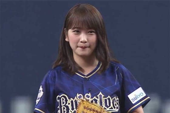 笑顔でスタンド魅了 女優・川栄李奈がオリックス対日本ハム戦で始球式