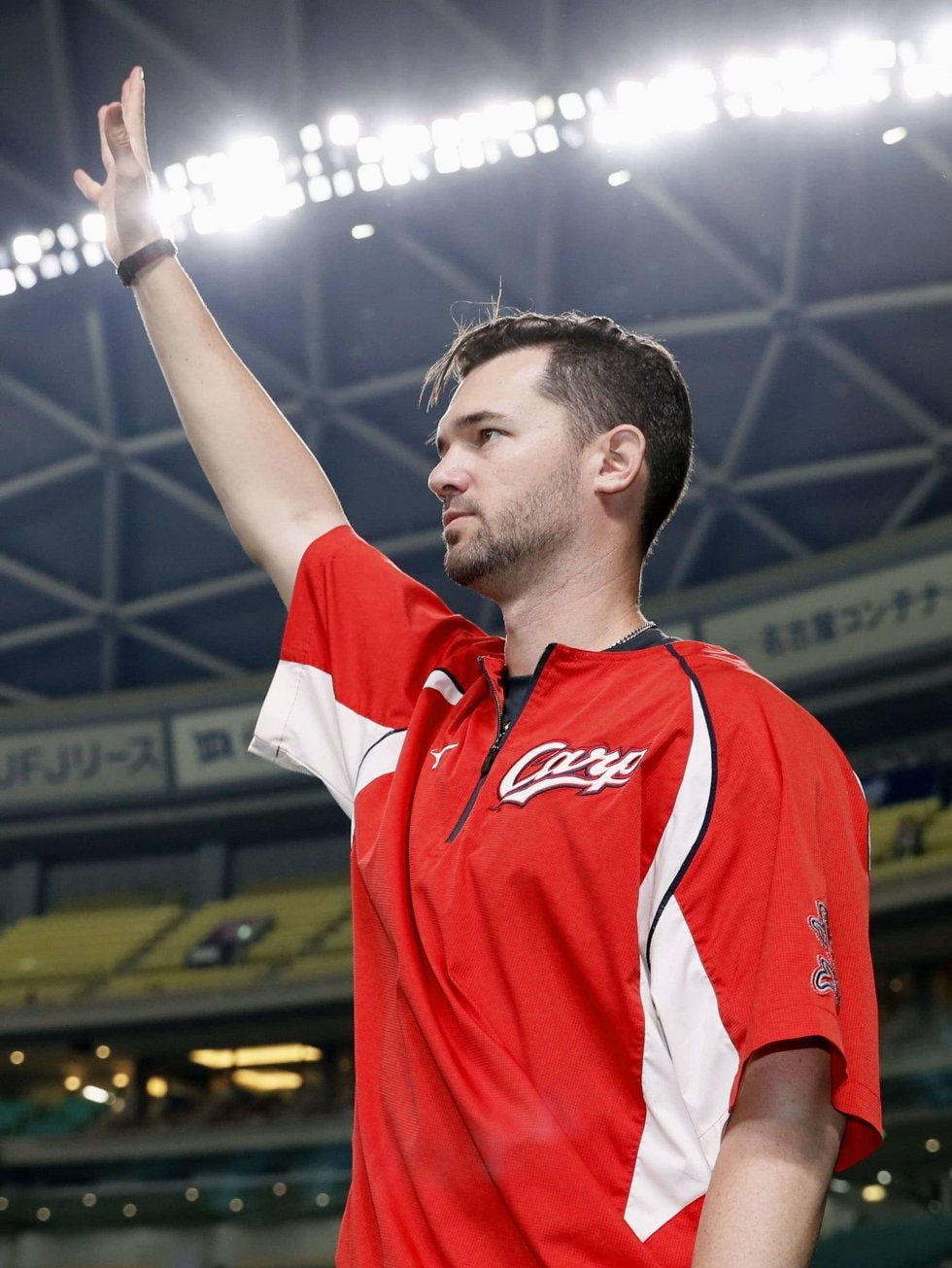 6勝目を挙げ、ファンの声援に応える広島・ジョンソン=ナゴヤドーム【写真提供:共同通信社】
