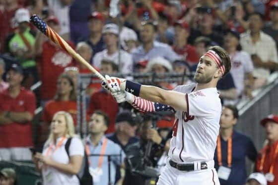 4分間で放った柵越えの数で競い合うメジャーのホームラン競争。第1ラウンドでは、第1試合でリース・ホスキンス(フィリーズ)が17本の柵越えを放ち、シーズン前半戦でリーグトップの24本塁打を放ったヘスス・アギラー(ブルワーズ)を撃破。第2試合では、シュワーバーが16本塁打で、アレックス・ブレグマン(アストロズ)を破った。