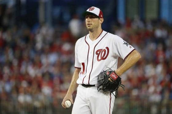 降板後、試合を中継する米テレビ局「FOX」のインタビューに答えたシャーザーは、「今回の対戦では、高めのいいコースに投げたと思ったんだけど、彼は6.7フィート(約201センチ)とデカすぎるから、もっと高めに投げるべきだったね。いい教訓になったよ」と笑顔で振り返った。
