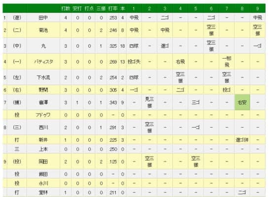 この日の広島打線の結果