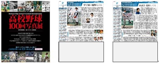「高校野球100回写真展」では、第1回全国高校野球選手権大会から撮り続けた数十万枚の写真の中から名勝負、名プレー、名選手の写真を展示。応援風景、服装や流行などの風俗、阪神甲子園球場の変遷、2015年に野球殿堂入りした同社創業者の村山龍平の始球式の様子なども合わせて展示するため、高校野球を軸にした100余年の時代を俯瞰できる写真展となる。