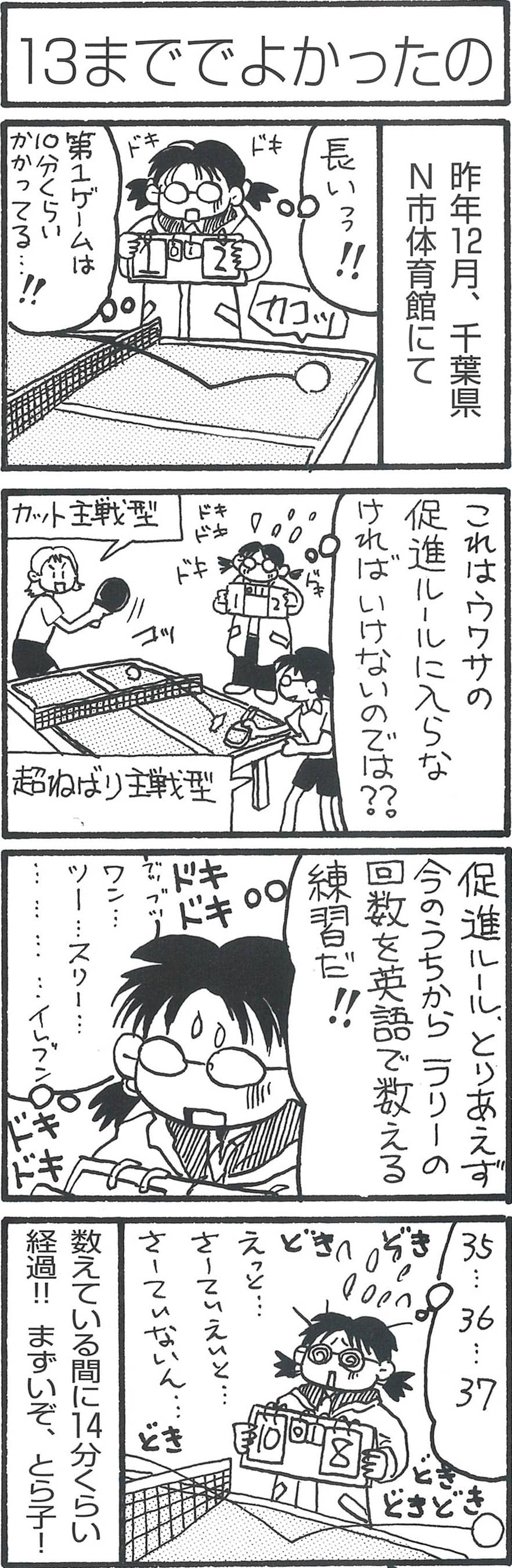 13まででよかったの【卓球4コマ漫画・レディース卓球24時】