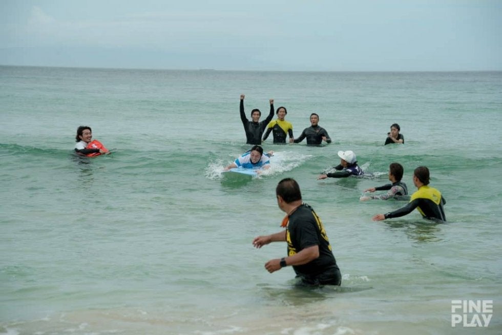 地域の子どもたちやハンディキャップのある人たちなどがビーチに集まって、プロサーファーの大橋海人選手や、プロ車椅子テニスプレイヤーの荒井大輔選手などと共に本場のサーフィンを体験し、健常者も障害者も関係なしに自然の中で一緒の空間を楽しみ素敵な思い出を作っていった。