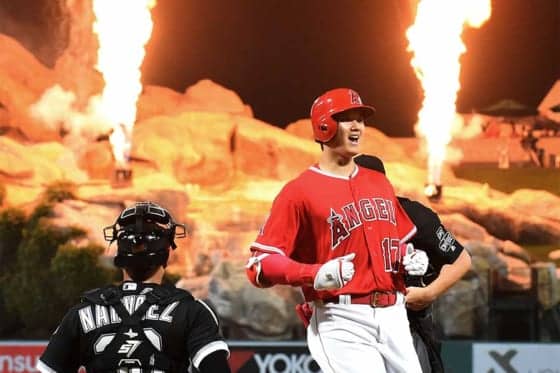 25日(日本時間26日)の本拠地ホワイトソックス戦に「2番・DH」で2試合ぶりに先発出場し、9号2ランを放ったエンゼルスの大谷翔平投手。4打数1安打2打点1四球で3三振を喫したものの、プホルス、トラウトとの初“トリオ弾”でチームを11-3の勝利に導いた。メジャー1年目での2桁本塁打に王手をかけた一発は、打球速度110.4マイル(約178キロ)、飛距離446フィート(約136メートル)の驚愕弾。エンゼルスが公式インスタグラムで画像や動画を公開すると、ファンからは「ビースト」「ムーンショット」などと称賛の声があがった。