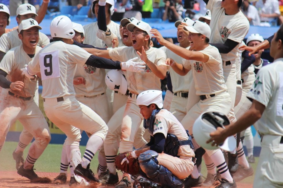 3対3で9回を迎えた緊迫した試合で日大三の4番・大塚晃平外野手(3年)が試合を決めた。三振に倒れた主将の日置航内野手(3年)から「あとは任せたぞ」と声をかけられた大塚。気持ちを高ぶらせながらも「高めに浮いてくる変化球を狙っていました」という冷静な狙い通りに真ん中高めに入ってきた変化球を振り抜くと、打球はレフトスタンドに飛び込むサヨナラ本塁打となった。東京大会を秋春連覇して迎えながらも苦しい試合が続いた今夏だっただけに、小倉全由監督は「自分のせいでダメにしてしまいそうだった大会で選手たちが本当にやってくれました」と涙を拭った。
