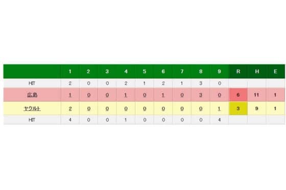 広島 6-3 ヤクルト(31日・神宮)