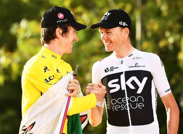 ゲラント・トーマス(左)の総合優勝を祝福するクリス・フルーム(右)