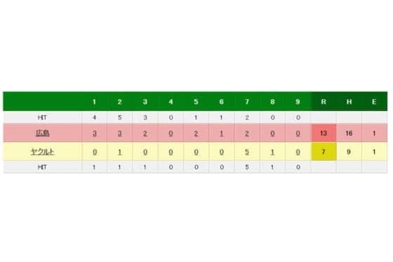 広島 13-7 ヤクルト(1日・神宮)