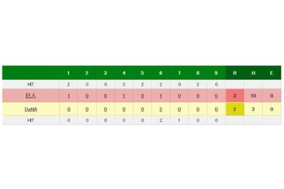 DeNA対巨人の試合結果