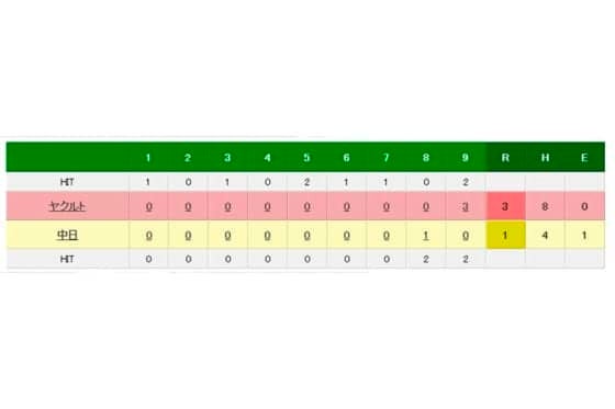 ヤクルト 3-1 中日(12日・ナゴヤドーム)