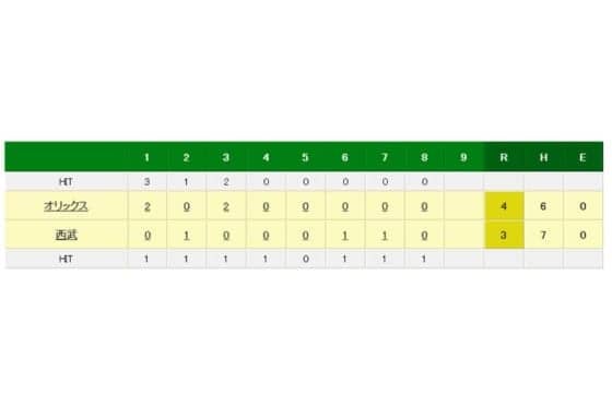 西武対オリックスの試合経過