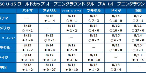 第4回 WBSC U-15ワールドカップ オープニングラウンド結果表