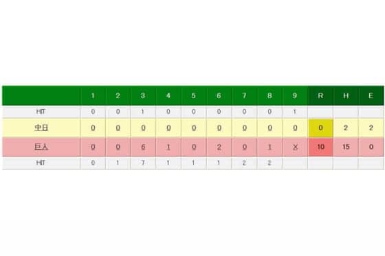 巨人は本拠地での中日戦を10-0で勝利し連敗をストップした。エース菅野が中日打線を2安打に封じ今季4度目の完封で10勝目をマーク。打っては5本塁打を含む先発全員安打の15安打10得点で圧勝した。