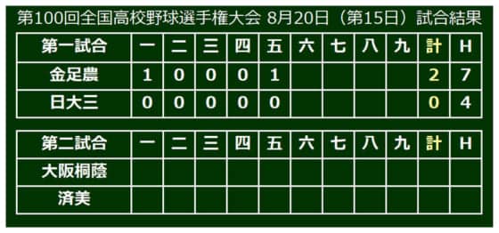 第100回全国高等学校野球選手権記念大会第15日目は20日、準決勝第1試合で金足農(秋田)‐日大三(西東京)が対戦。5回を終え2-0で金足農がリードしている。